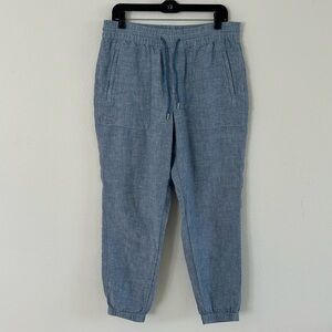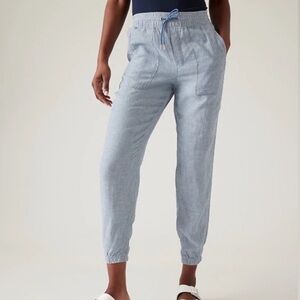 Athleta Retreat Linen Jogger Pants in Chambray Blue