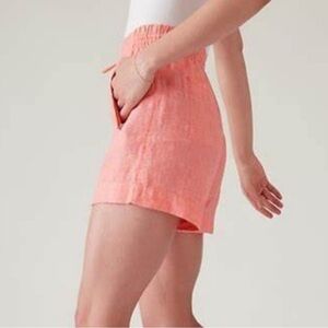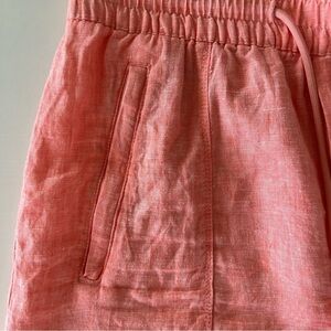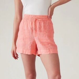 Athleta Retreat 100% Linen Mid Rise Short Elastic Drawstring Salmon Pink