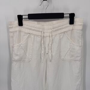 Athleta Retreat Wide Leg Lounge Pants Womens 12 White Linen Pockets Tie Waist