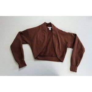 Athleta RetroPlush Wrap Sweatshirt Brown Fleece Cropped Cardigan Women’s Size S