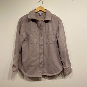 Ultra soft plush collared button down shirt jacket. In excellent condition. Light purple color. Perfect for fall, spring and winter. Size small.