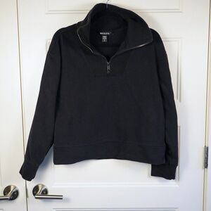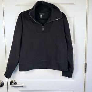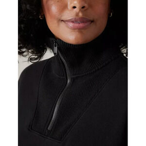 Athleta Retroplush Revive Cropped Sweatshirt Small 1/2 Zip High Neck Black