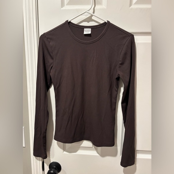 Long sleeve chocolate, brown, crewneck, ribbed tea. Waist length. Size small, perfect condition.