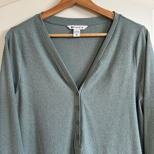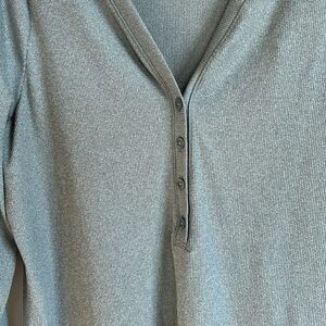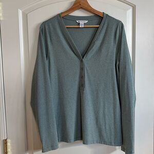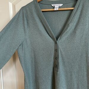 Athleta Ribbed Henley Uptempo Top Long Sleeves Green Size XL