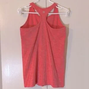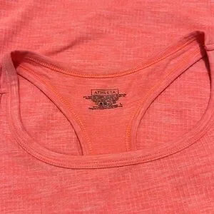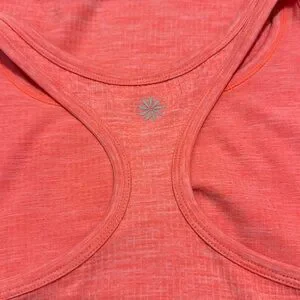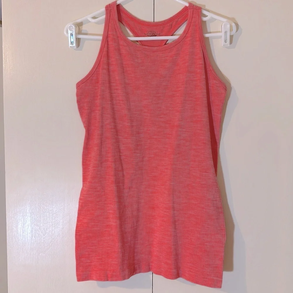 Athleta racerback tank top in women’s size large. Fitted style with ribbed material made from 80% recycled polyester. Pretty orange-pink salmon color. Comfortable for working out or casual wear. In great condition!