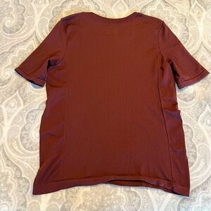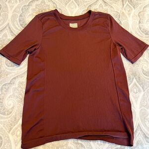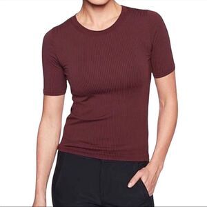 Athleta Ribbed Renew Dark Garnet Maroon Athletic Tee T-Shirt