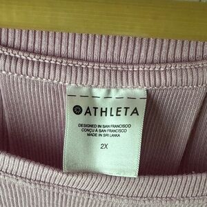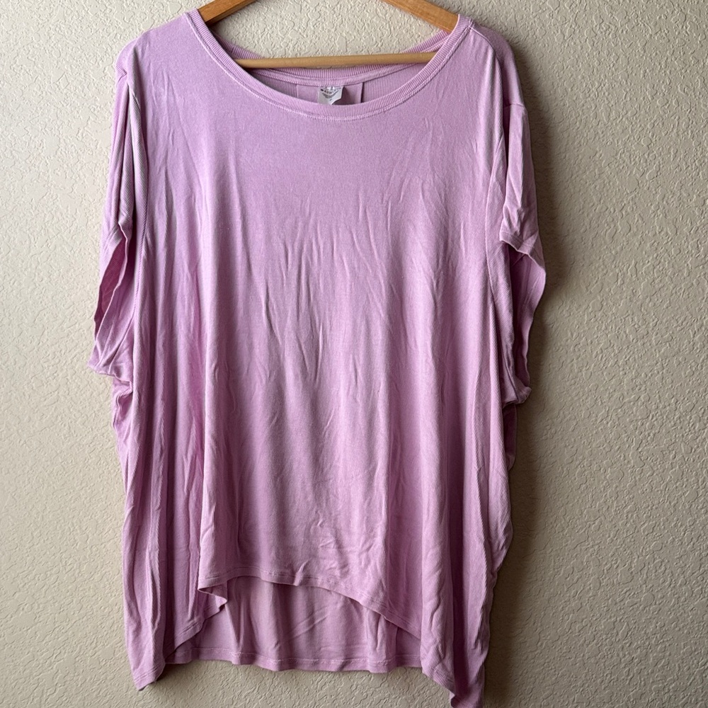 Women’s size 2X cozy ribbed short sleeve top from Athleta. Pretty lavender color. No holes or stains, but has been worn. Super soft and comfortable.