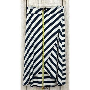Athleta Ribbon Stripe Midi Skirt Size XS Tulip Hem Navy White Faux Wrap Stretch