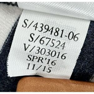 Features: Comfortable pull-on style with a tulip hem and faux wrap front, midi length, slighly A-line silhouette in a navy and white ribbon stripe pattern and a 2 1/2" wide stretchy waistband.