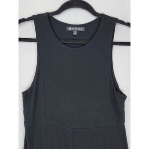 This Athleta Rincon women's dress in black is perfect for any casual or travel occasion. The dress is made of a lightweight and stretchy polyester and spandex fabric, making it comfortable to wear and easy to care for with machine washable garment care. The dress features a crew neck and sleeveless design, with a pullover closure and strap accents.