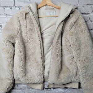 Athleta Ritual Jacket In Abalone Grey Beige Hooded Cropped Full Zip Size S