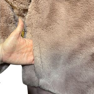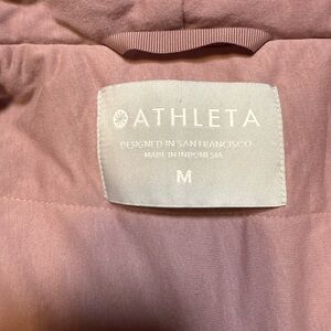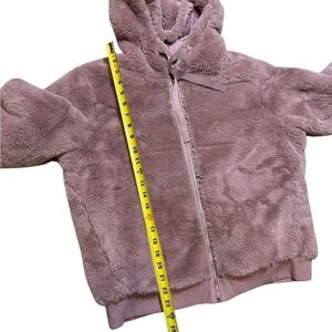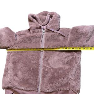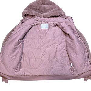 Athleta Ritual Jacket, women’s mauve coat, faux fur hooded jacket, winter zip coat, plush mauve outerwear, Athleta medium jacket, cozy winter wear, athleisure outerwear, soft faux fur coat, smoke-free home, preloved Athleta jacket