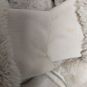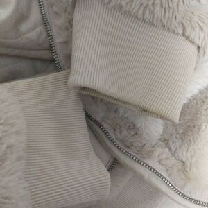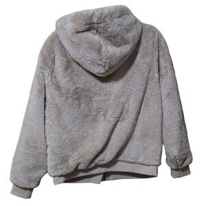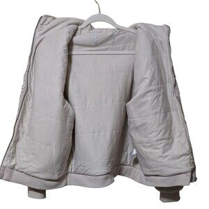 Athleta Ritual faux fur hooded sherpa bomber full zip jacket abalone beige M/L (SEE MEASUREMENTS IN PHOTOS)