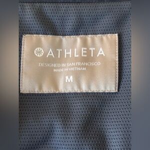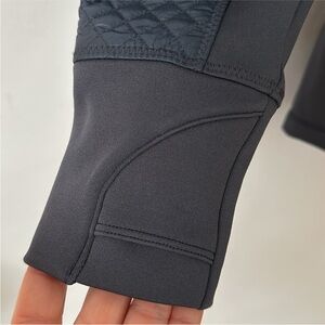 Stay warm without the bulk in this Athleta Rock Ridge PrimaLoft jacket, a sleek mixed-media performance layer designed for cool-weather workouts, travel, and everyday wear. This blue-gray hooded jacket features quilted insulated front panels, stretchy side panels for ease of movement, a full zip front, zip pockets, thumbhole cuffs, and a longer flattering silhouette for added coverage. PrimaLoft insulation helps provide lightweight warmth, while the fitted shape keeps it polished and sporty. Great pre-owned condition with normal light wear. Size medium.