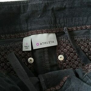 Dark grey with a slight navy hue. Zip fly, interior drawstring. Very good condition. mini athleisure gray