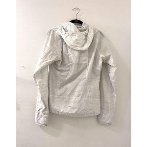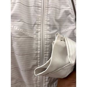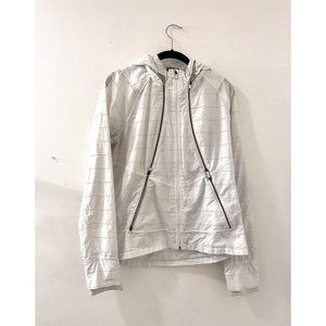 Athleta Run On Jacket White Striped Hidden Hood Windbreaker Size medium
