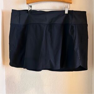 Great condition. Women’s Athleta Run With It 14” skort. Features a stretchable waistband with interior elastic drawcord, back zipper pocket and the shorts underneath have side pockets.
