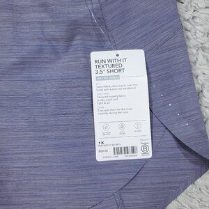 Women's Athleta Run With It Textured 3.5" lined Shorts in purple "Space Dye Tempest Violet". Style number 657669. New with tags. Women's plus size 1X, real measurements shown in photos with shorts laid flat: