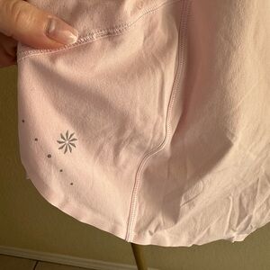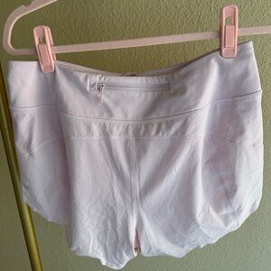 π Details: Baby pink athletic Run With It shorts by Athleta. Size M and a relaxed fit. 3.5β inseam. These are a true, cool, ballet pink which you can see best in the second photo.