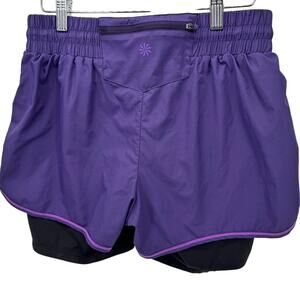 Athleta Running Shorts Womens Small Ready Set Go 2 in 1 Activewear Purple Black