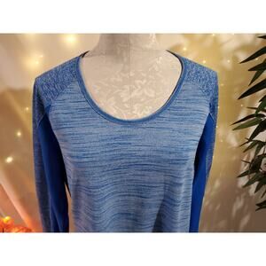 Athleta Running Wild Heathered Blue Long Sleeve Running Shirt Womens Size XL