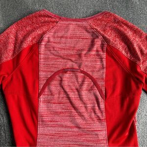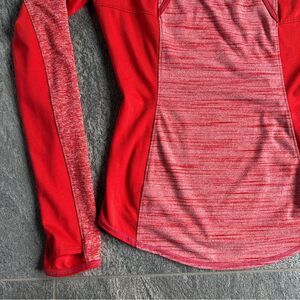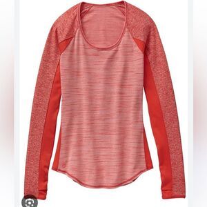 TAGS: Athleta Running Wild Mix Crew Fire Heather Red Orange Long Sleeve Scoop-neck Top Thumbholes Run Gym Cross Training Hiking Athleisure
