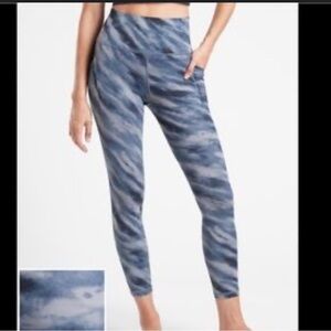 Athleta Salutation II Navy Printed Stash Pocket Tight M Leggings