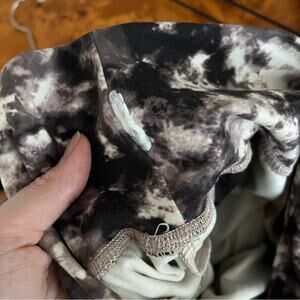 In good preowned condition. Cool tie-dye effect print. Super soft material. Pockets. High rise. Jogger style.