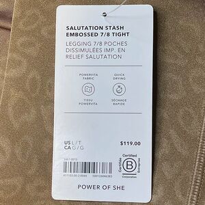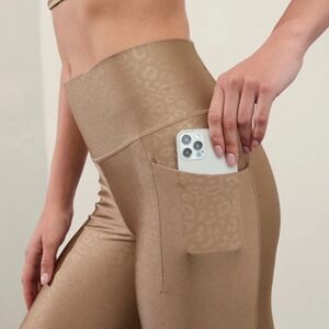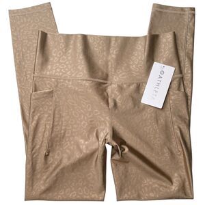 Athleta Salutation Stash High Rise 7/8 Legging Alba Animal Beige Size L Embossed