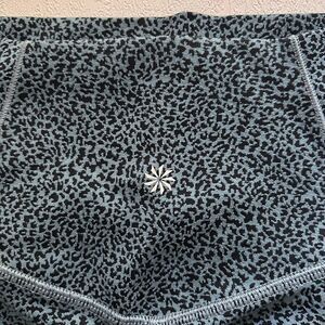Athleta Salutation Stash II leggings in a textured teal/black animal-like print. Size XS. These high-rise tights feature stash side pockets, a supportive waistband, and a sleek yet soft fit that’s perfect for yoga, gym, or casual wear.
