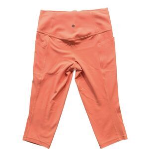 Athleta Salutation Stash Pocket Crop Sunset Glow Coral Capri Tights Medium NEW