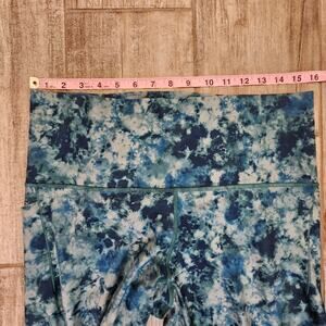 Lot of three Athleta Salutation Stash Pocket Printed II leggings in size 1X. Includes blue tie-dye, blush floral, and brown marble tie-dye prints. Made from soft, sculpting Powervita™ fabric with side stash pockets and a high-rise waistband for a supportive, flattering fit. Ideal for yoga, training, or everyday wear. Measurements are included in the photos. Good pre owned condition with very slight wear at the gusset on two pairs (shown in photos).