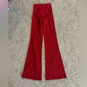 Athleta Salutation Stash Rib Flare Pant Pockets Women’s Size XXS Candy Red Yoga