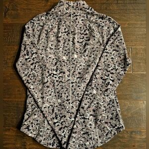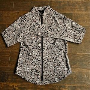 Pink, Black, and Leopard Print Salutation Jacket with Black Zipper, Side Zip Pockets, and Thumb Holes. High Quality Material and in Excellent Condition. Powervita Fabric is Buttery Soft with Support that Feels Like a Hug. Moisture Wicking, Quick Drying, Breathable, UPF 50 Plus Sun Protection, and Light Compression. Pattern is Meadow Decadent Chocolate.