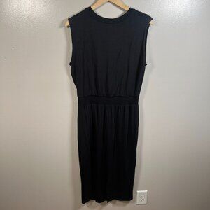 Athleta Santorini Cinch Midi Dress Size Medium Black Work Travel Athleisure