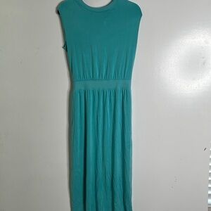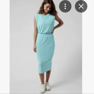 Athleta blue midi dress size small T back slits elastic band lined armpit to armpit is 19 inches shoulder to hem 46 inches