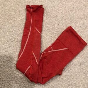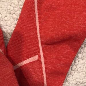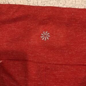 Athleta bright red orange Embodiment seamless tights. Very good condition, no flaws. Features continuous drawstring and key holder.