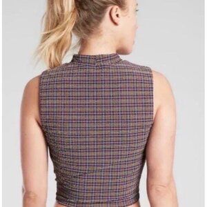 Athleta Seersucker Crop Rashguard Womens Size XS Surfer Girl Beach Outdoor Pool
