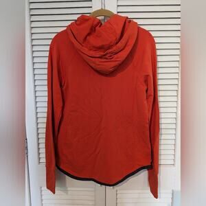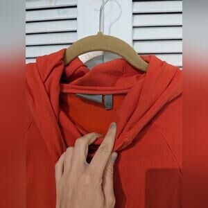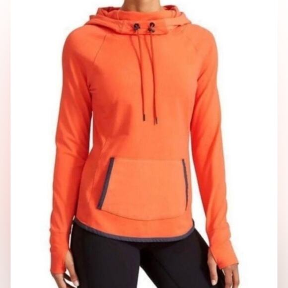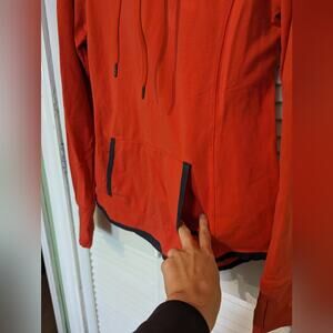 Has a cowl neck style front with drawstrings, and a kangaroo pocket in the front.