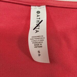 NWOT Athleta Shanti Scoop Top in Coral Pink, Size Small. Poly/Spandex. 3/4 length sleeves. Buttery soft & Super stretchy. Label marked through to prevent store return.