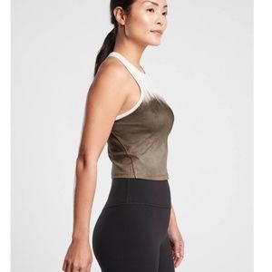 Athleta Shanti Watercolor Stripe Crop Tank Top S Small Brown Fitted Breathable, unsinkable,cropped hem For Yoga, exercising, walking, running, sports Buttery soft