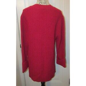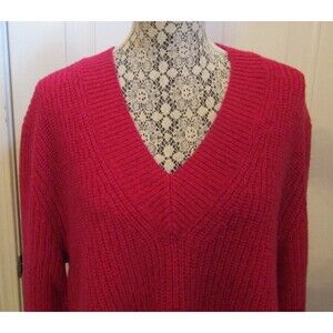 Soft chunky knit ribbed sweater from Athleta. Beautiful deep red color, style name Shasta. Long cuffed & stitched sleeves, wide ribbed v neckline & side slits nearly to armpit. Oversized fit, tunic length sweater falls to midthigh with high-low hem. Flattering slightly fitted shape. 40% wool viscose nylon blend knit. Hand wash, dry flat.