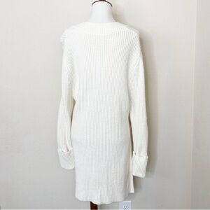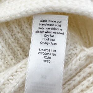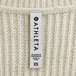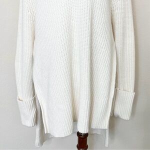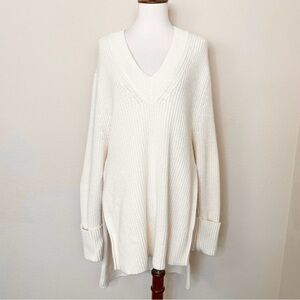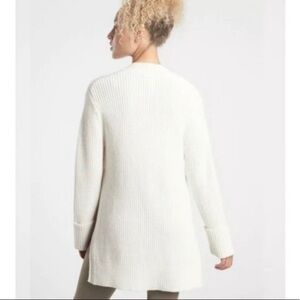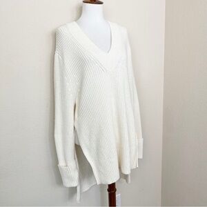Athleta Shasta V-Neck Sweater Wool Blend Chunky Ribbed Hi Low Hem Dove Cream