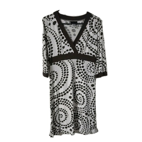 Athleta Shift Dress Geometric Dots, White & Brown, Medium