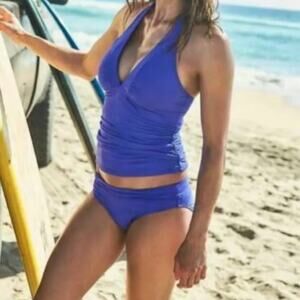 Athleta Shirrensipity Halter Tankini Swim Top in Powerful Blue Size Small