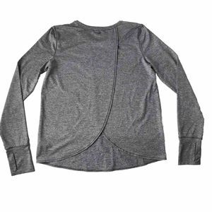 Athleta Shirt Women Small Gray Heather Thumb Hole Tulip Back Long Sleeve Top