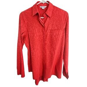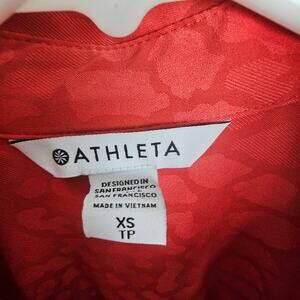 Athleta Shirt Women XS Red Urbanite Textured Top Button Up Collared Neck Vented