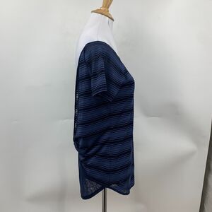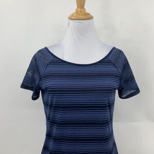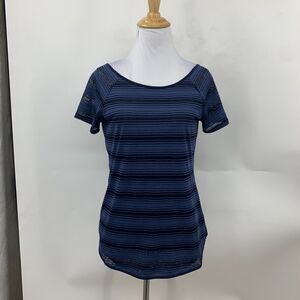 Athleta Shirt Womens 2XS Mesh Layered Low V Back Twist Stripe Short Sleeve Top