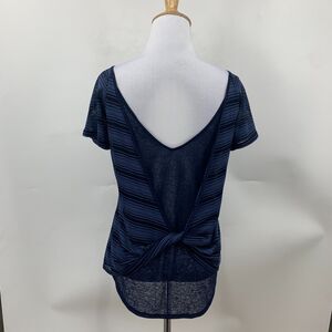 ATHLETA SHIRT WOMENS 2XS MESH LAYERED LOW V BACK TWIST STRIPE SHORT SLEEVE TOP