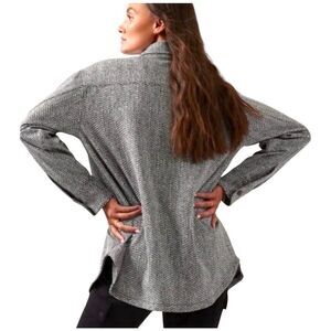 Athleta Shirt Jacket Womens Large Textured Button Up Braiden Black White Medium